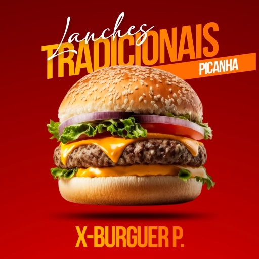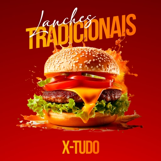 Pão, Bife de Hambúrguer, Queijo, Ovo, Alface, Tomate, Milho, Batata Palha.
