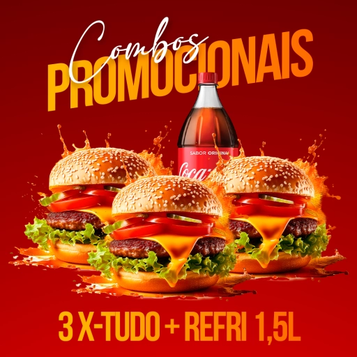 3 X TUDO + REFRI 1,5L (ALEATÓRIO)