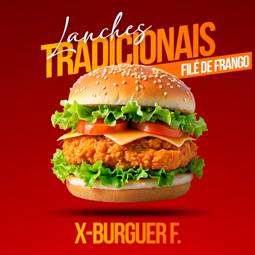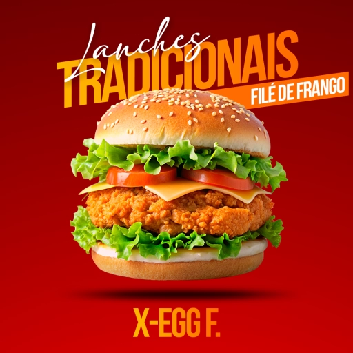 Pão, Bife de Frango, Queijo, Ovo, Alface, Tomate, Milho, Batata Palha.
